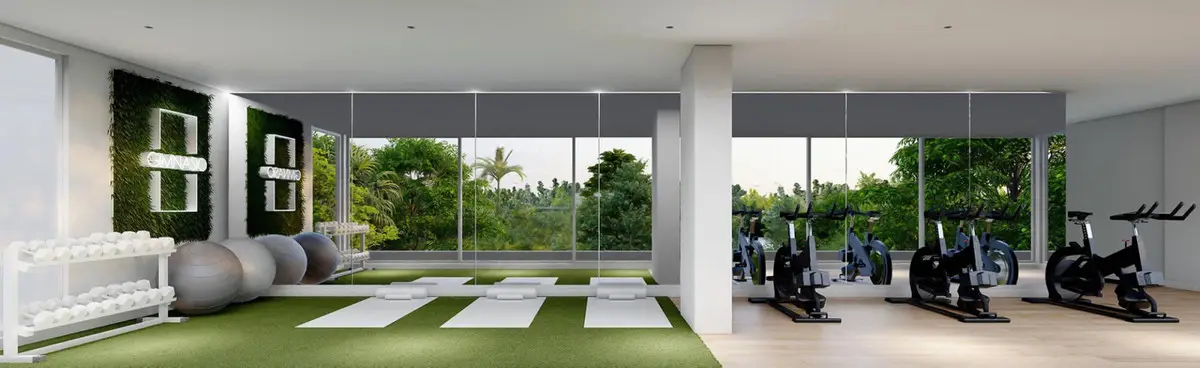 In addition, this development offers a fitness area with a fully equipped gym and stretching zone, providing the opportunity to stay fit all year round.