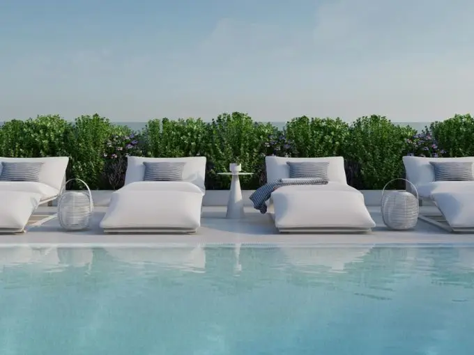 Sunbeds are placed for basking in the Spanish sun, and a meticulously designed pool, built with Indonesian stone, not only adds an aesthetic touch but also purifies the water for a refreshing swim.