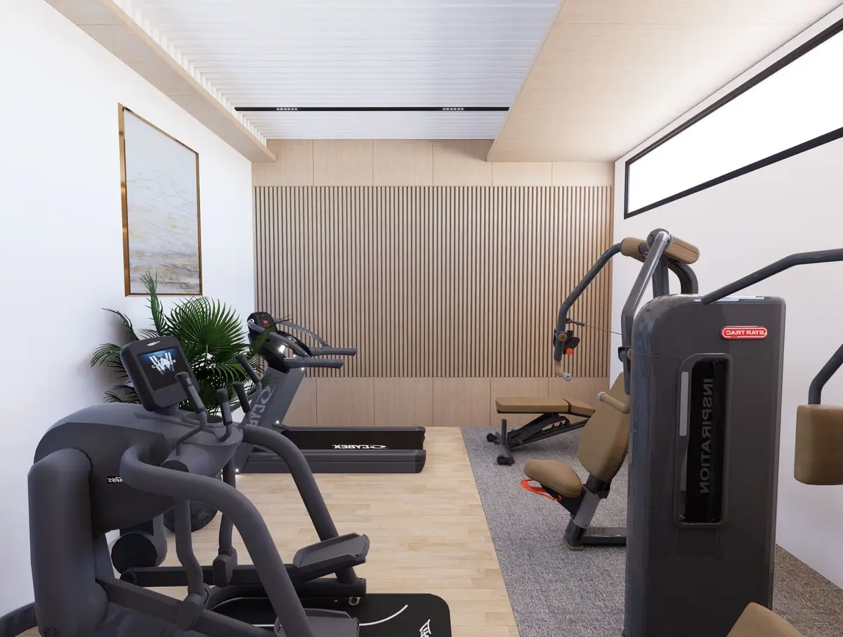 The semi-basement, which benefits from natural light, includes a sauna, jacuzzi, gym, and laundry facilities—all powered by renewable energy. These sustainably designed villas are built with eco-friendly materials to ensure environmental responsibility.