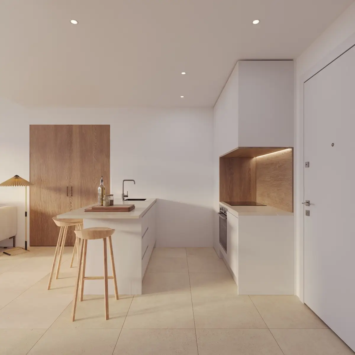 This new project has been designed under the concept of „resort-style living”, offering bright homes that radiate well-being, ideal for those who want to enjoy a comfortable, relaxed lifestyle surrounded by services, in a peaceful and well-connected environment, just 5 minutes by car from the beach.