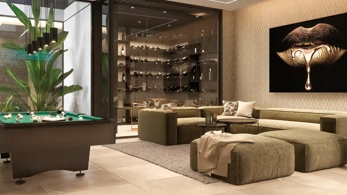 The master suite offers two en-suite bathrooms and two dressing rooms. Additional features include a staff room, laundry area, and a garage for four cars. The villa also comes with the latest OLED TV and a BOSE sound system with AI integration.